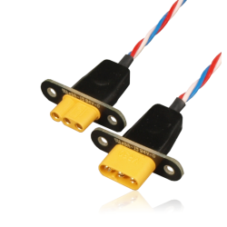 Mit den optional ansteckbaren Halterungen kann man den Stecker fest im Rumpf montieren, außerdem ist das Kabelset "one4one" verpolsicher. Um die Sache perfekt zu machen, kommt natürlich das leichte und hochflexible Premium Kabel zum Einsatz. Beim Standardset sind die Kabellängen 40cm und 120cm je Seite und zwei Stück Halterungen dabei. Features 2mm Goldkontakte für höchste Strombelastung 0,35mm² Querschnitt Kabellänge 180cm hochfeste Isolierung der Lötstellen ausgezeichnete Langzeit- Gebrauchseigenschaften keine Oxidation der Lötstellen möglich Vibrationsschutz Knickschutz resistent gegen chemische Einflüsse temperaturbeständig von -30°C bis +90°C Mit optionalen Befestigungslaschen Fester Sitz garantiert auch bei häufigem Stecken