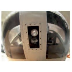 Einbaulandescheinwerfer für Jet Ranger Die Landescheinwerfereinheit ist zum Einbau einer Beleuchtung vorbereitet. Scheinwerferkasten der Rumpfkontur entsprechend mit zwei Reflektoren zur Aufnahme einer 5mm LED. Anbaurahen, Verglasung und Schraubensatz. Durch den Anbaurahmen ist auch ein nachträglicher Einbau bei einem bereits fertiggestelltem Modell problemlos möglich.
